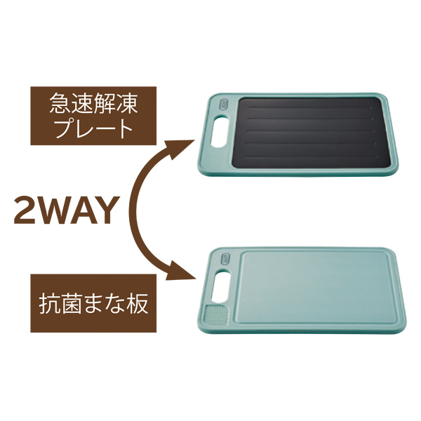 急速解凍プレートと抗菌まな板の1枚2役!