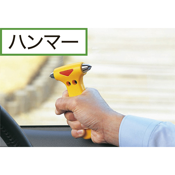 災害時などの際、車の窓ガラスが割れない時のために緊急脱出用ツールを備え付けておけば安心!