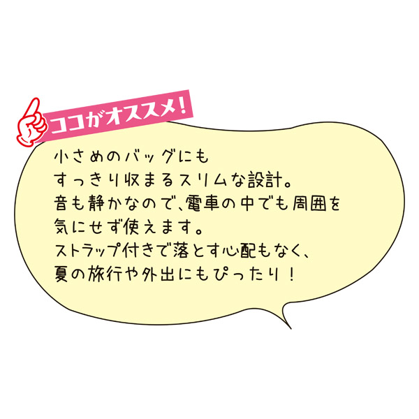 コンパクトなのにしっかり送風!どこに行くにも持ち歩きたくなるサイズ!
